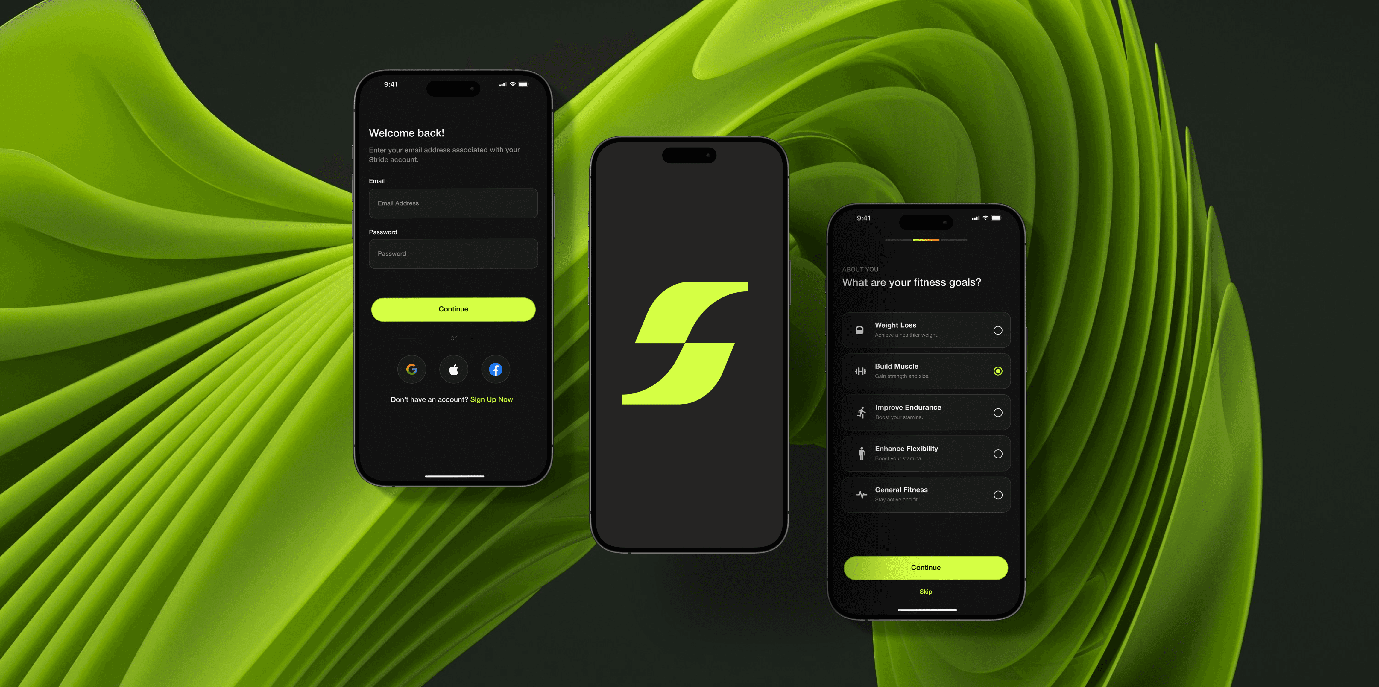 The color palette features a vibrant neon green paired with dark, muted backgrounds. The neon green symbolizes energy, progress, and vitality, while the dark tones provide a sleek, modern contrast that enhances readability and usability. This combination ensures a visually engaging experience that remains professional and accessible to all users.