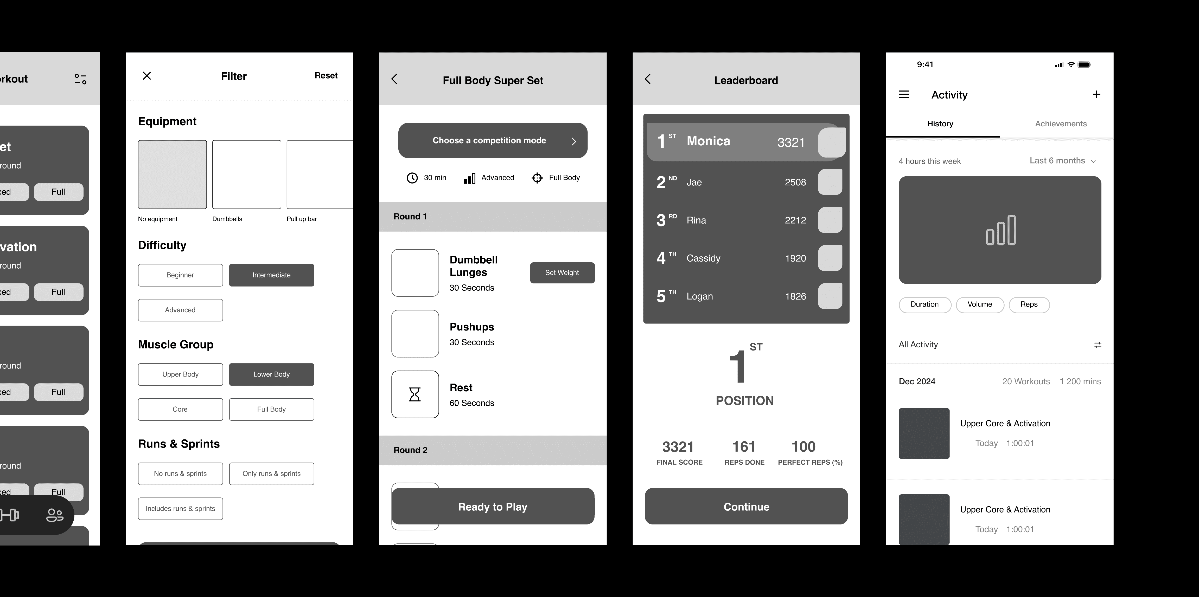 Gamified fitness app using AI to track progress and motivate users through challenges and competition.